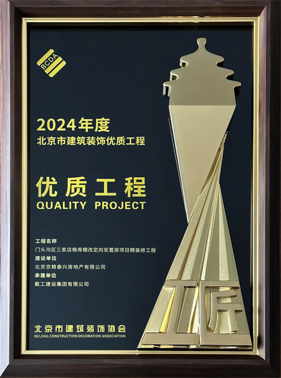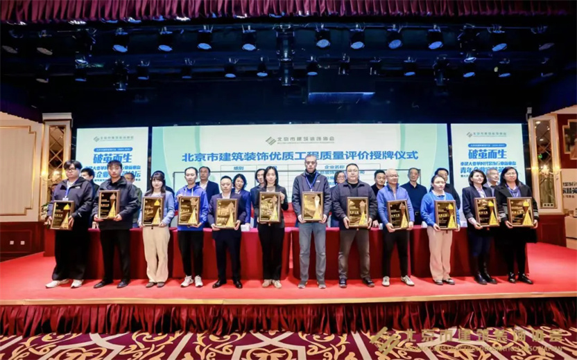 同時,2023-2024年度北京市建筑裝飾優(yōu)質(zhì)工程質(zhì)量評價結(jié)果及施工組織設(shè)計競賽也在會議中公布,戴工集團憑借精湛的施工工藝和嚴格的品質(zhì)把控,所承建的“門頭溝三家店糧庫棚改定向安置房項目精裝工程”以及“清華大學(xué)求真書院雙清綜合樓辦公區(qū)裝修項目”均獲得2024年度北京市建筑裝飾優(yōu)秀工程獎!
